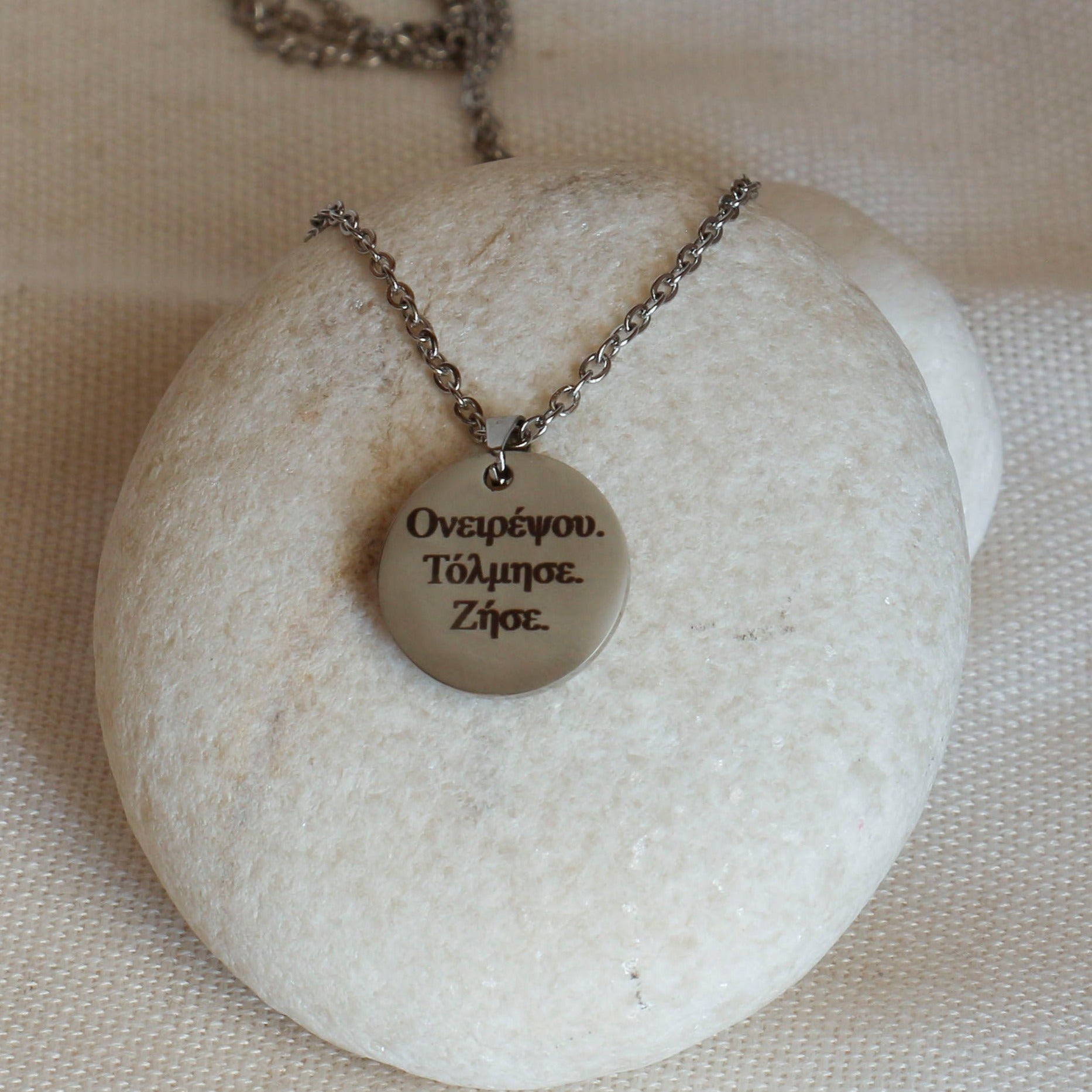 Απλό, διαχρονικό και κομψό, αυτό το κολιέ μπορεί να γίνει το πιο συγκινητικό σημείο σε ένα γενέθλιο τραπέζι. Όταν το ανοίξει και διαβάσει τα χαραγμένα γράμματα, το βλέμμα της θα τα πει όλα.
