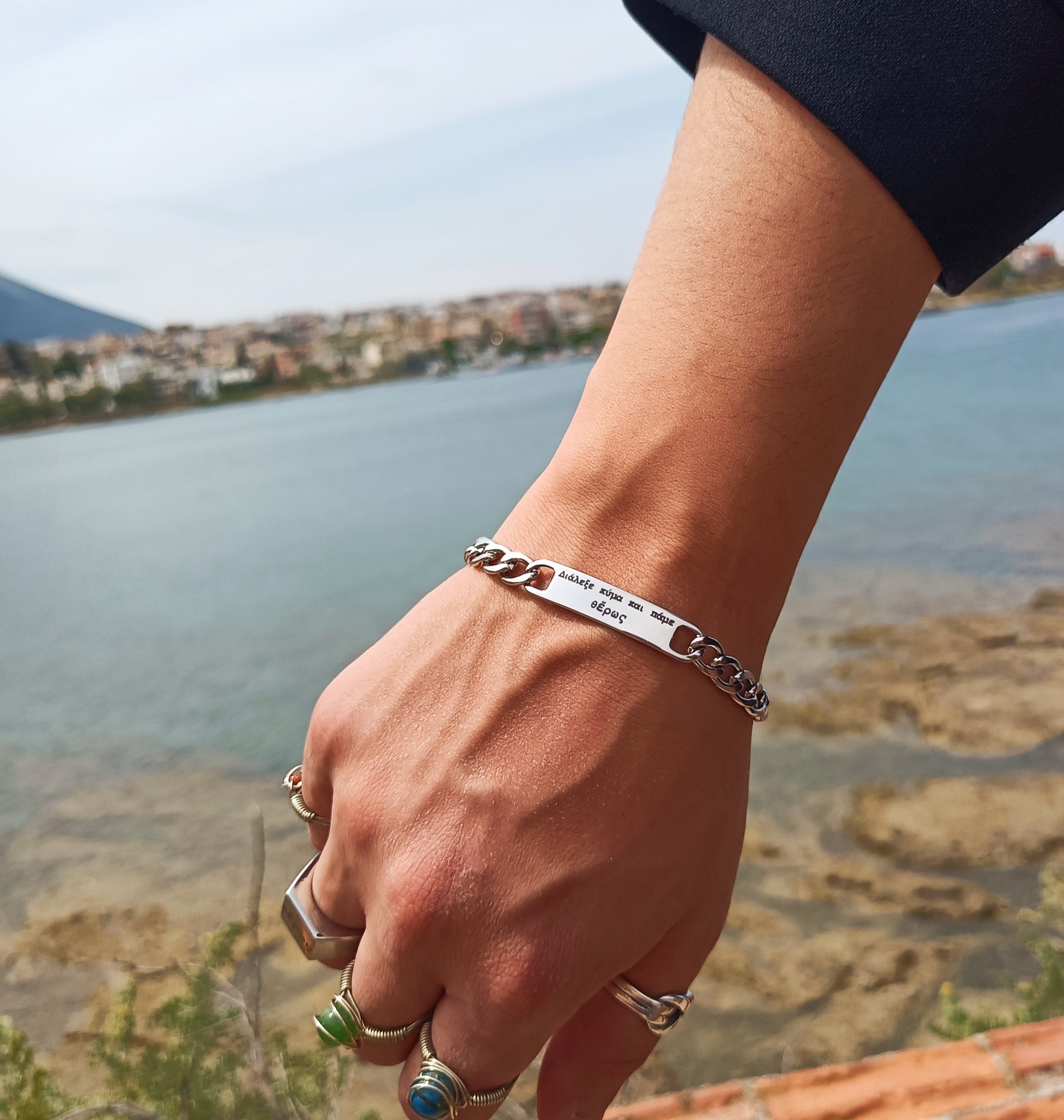Σε συνεργασία με την @a.panagiotou_doukaki_ δημιουργήσαμε το συγκεκριμένο βραχιόλι με αυτή την συμβολή φράση χαραγμένη στο βραχιόλι για να σε συνοδεύει σε κάθε σου περιπέτεια